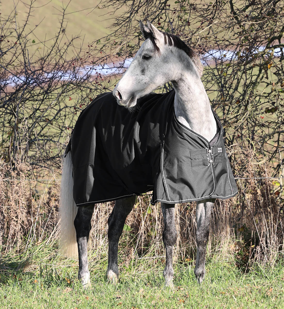 RBH SPORT 300g er et varmt og beskyttende vinterdækken, der giver hesten høj komfort i de kolde måneder. Med 300g thermobonded fiberfyld holder dækkenet effektivt på varmen, uden at hesten bliver tungt pakket ind. Den robuste 600D ripstop-yderside beskytter mod regn, vind og slid i vinterperioden.
