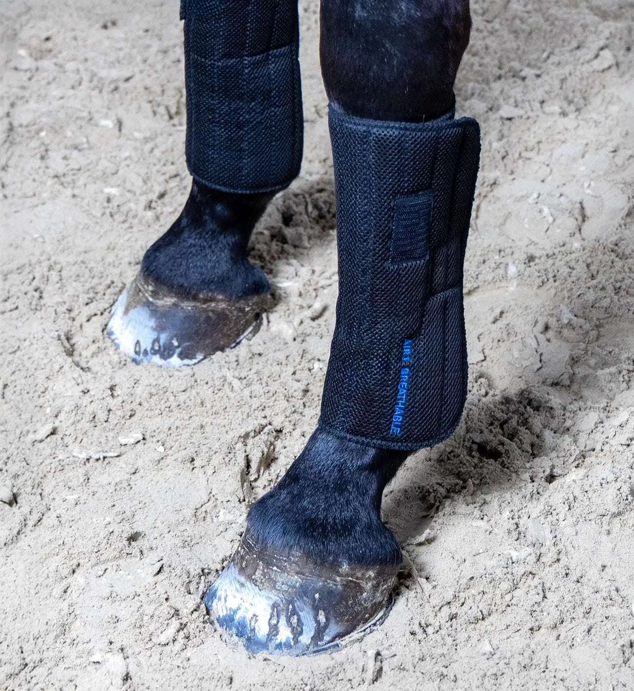 Designet til ryttere, der kræver det bedste – de sorte BREATHE bandageunderlag kombinerer innovativ funktion med et klassisk og stilrent look. Underlagene består af to lag: den avancerede Air1 mesh med hexagonalt bikubemønster, som fordeler tryk og absorberer stød, samt en blød mesh-yderside, der giver maksimal åndbarhed. Den åbne netstruktur sørger for konstant luftcirkulation og hjælper med at holde hestens ben køligere – også under krævende ridt og træning.