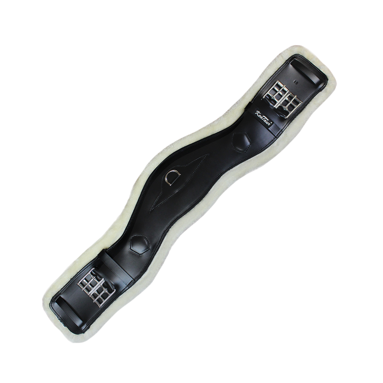 Utrolig blød anatomiskformet dressurgjord i kvalitetslæder. Gjorden har blød kunst lammeskinds foring, og elastik i begge sider, samt praktisk ring til fastgørelse af hjælpetøjle.