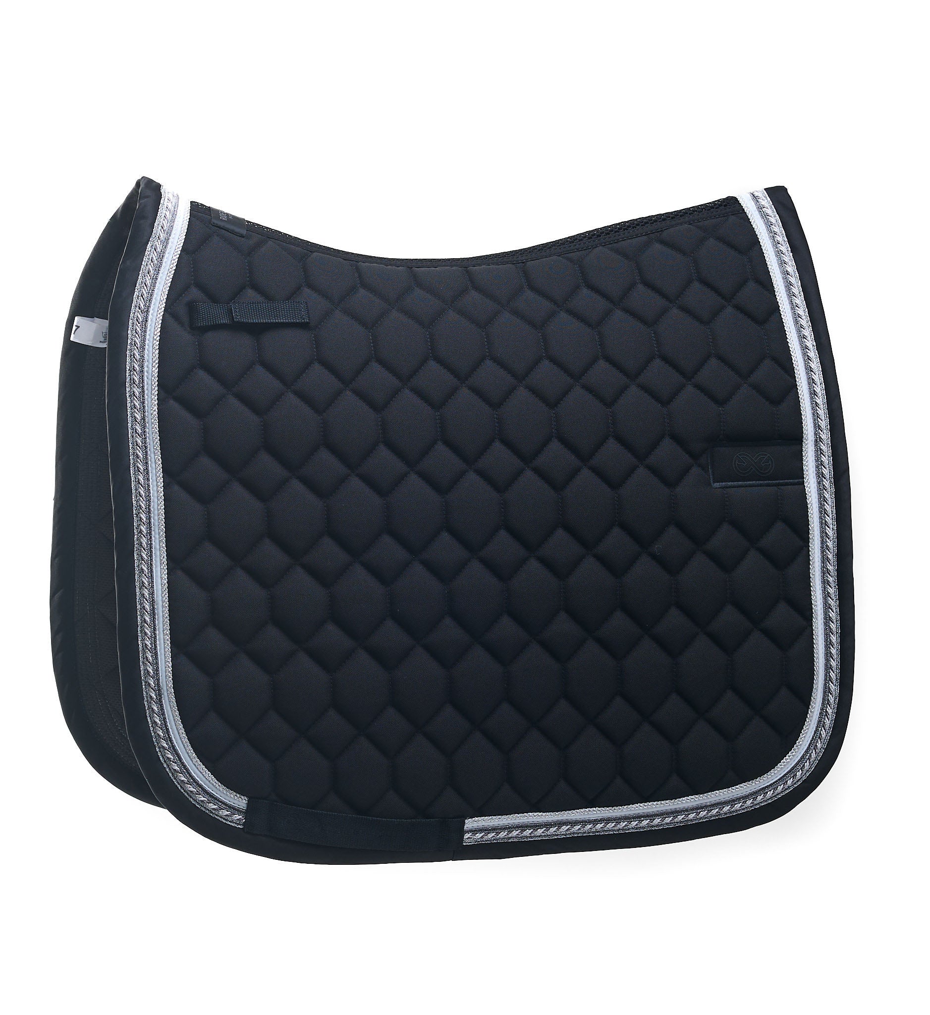 Hvis du har en 16½" sadel, anbefales det at vælge et 16" sadelunderlag, hvis din hest er ædel/let, og du ønsker, at kanten af underlaget skal ligge tæt omkring sadlen. Alternativt kan du vælge et 17" sadelunderlag, hvis du ønsker en større kant omkring sadlen.