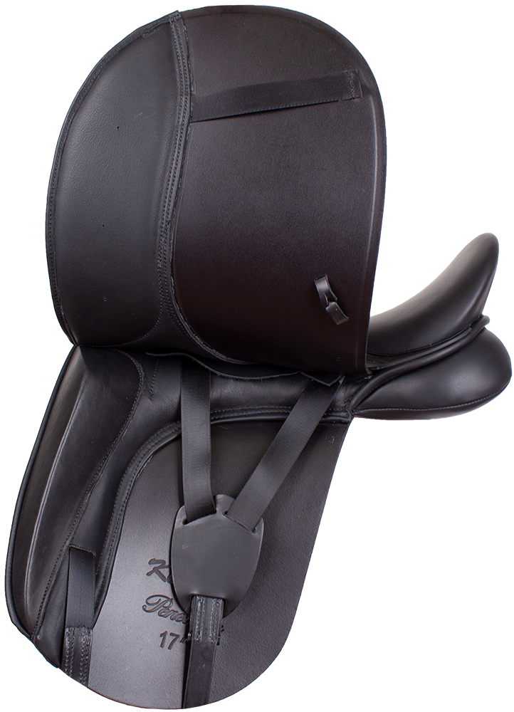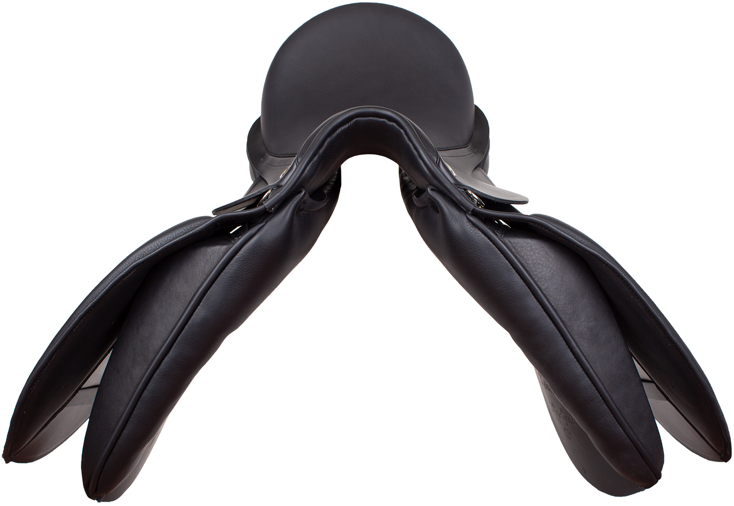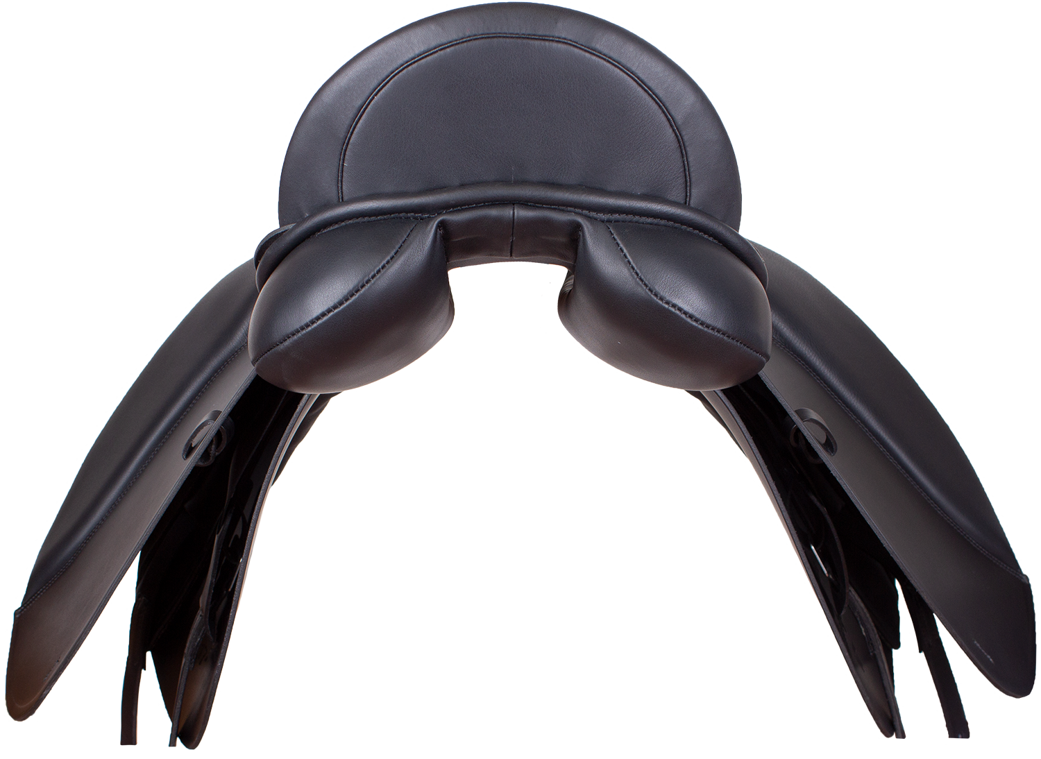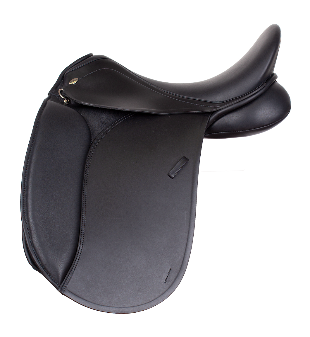 Flot dressursadel med flexibel bom og dybt sæde. Sadlen har lange anatomisk formede knæstøtter som giver optimal støtte til rytterens overschenkel.