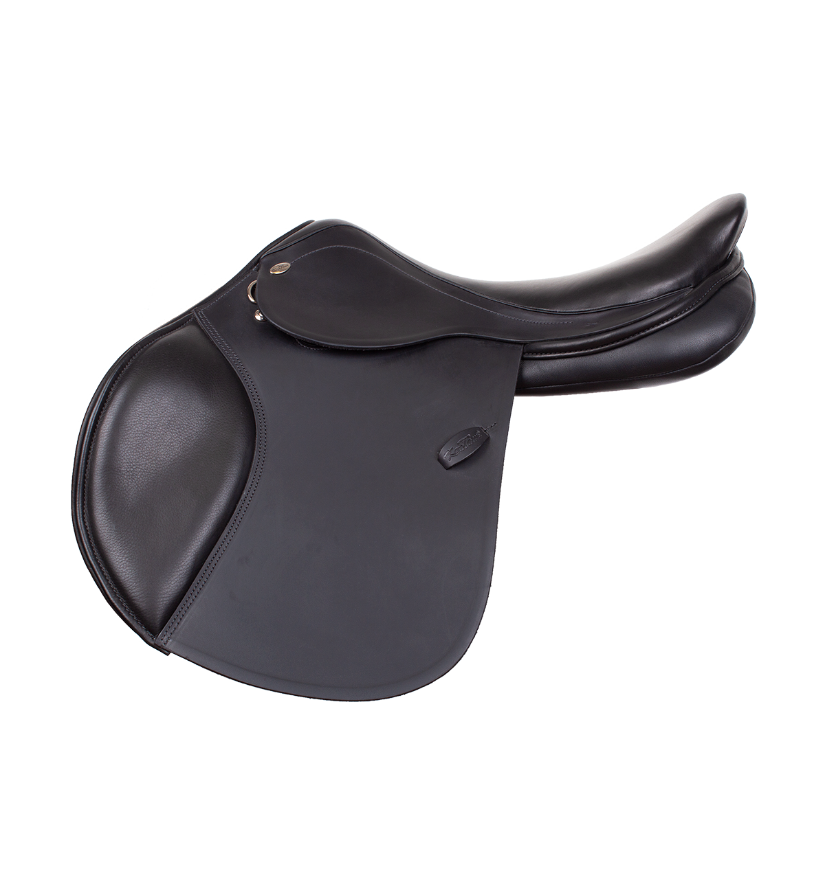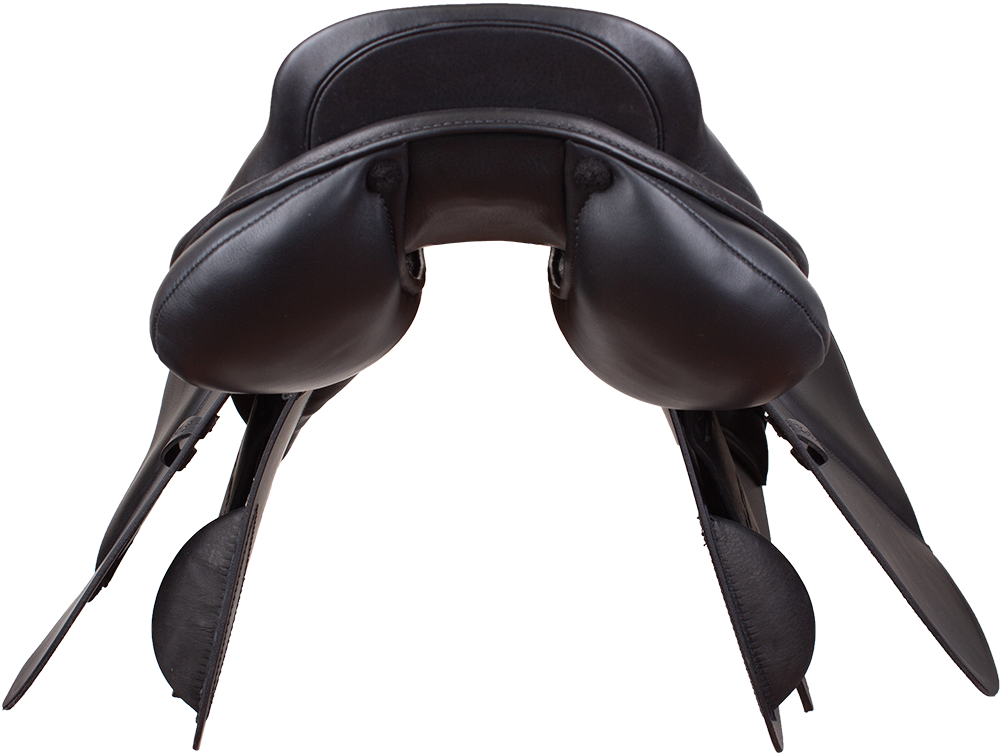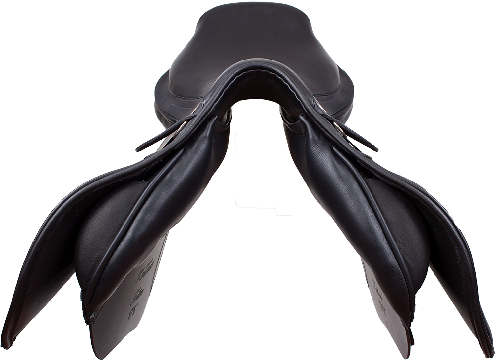 Spring sadel med flexibel bom og medium dybt sæde. Sadlen har  formskårede sadelklapper og de meget brede sadel-paneler fordeler vægten fra rytteren optimalt. Sæde- og knæpuder er beklædt med anti-slip kalveskind.