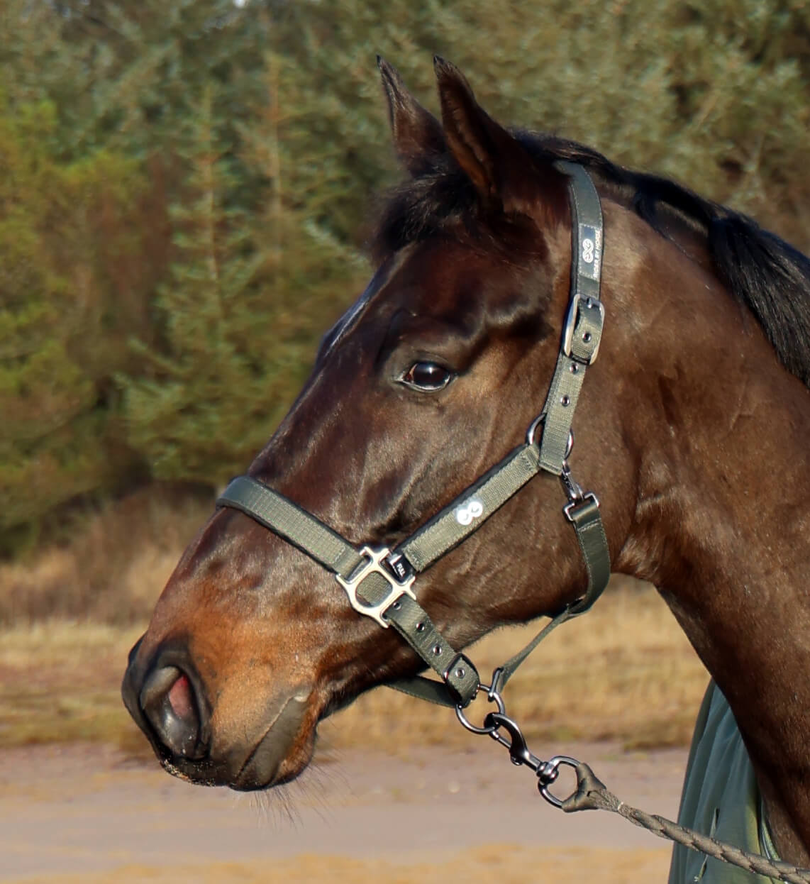 Fremstillet i en særlig blød, men stærk webbing, der ligger roligt og behageligt mod hestens hoved og samtidig sikrer høj holdbarhed i daglig brug.