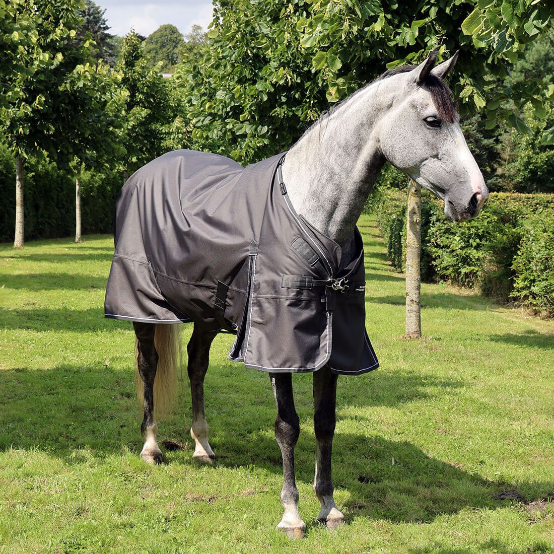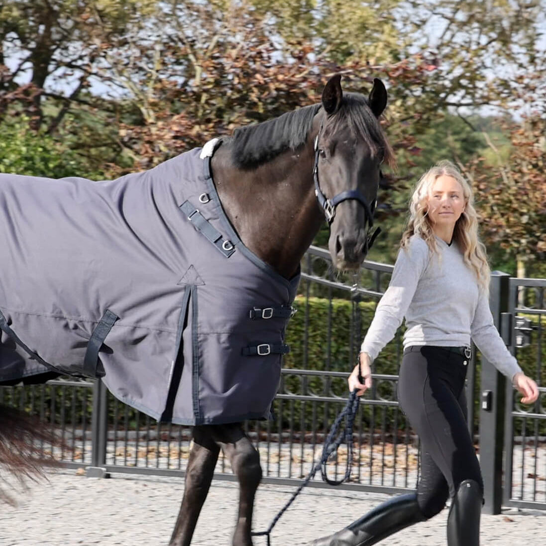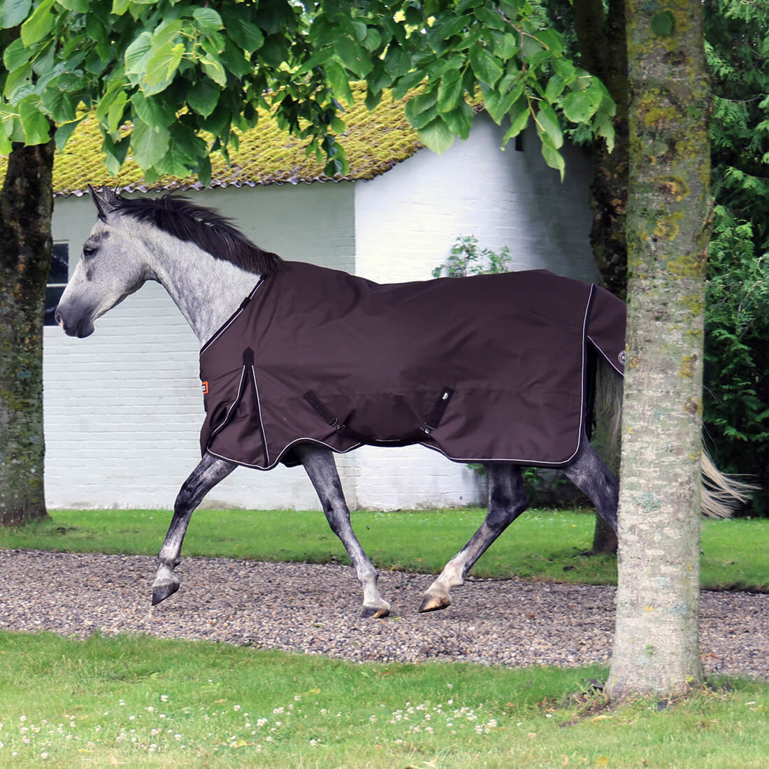 Det tredje anbefalede regndækken er Platinum. Dette dækken skiller sig ud med mange funktionelle og tekniske detaljer. Opnå det ultimative niveau af komfort og hestevelfærd med en vandtæthed på 15.000 mm og en åndbarhed på 12.000 mvt. Dette anatomiske dækken er udviklet til at holde hesten tør og varm under uforudsigelige vejrforhold. Inderside af Bamboo Charcoal tilføjer ekstra komfort og regulering af temperaturen, hvilket gør det ideelt til det skiftende vejr om foråret og efteråret, hvor vi oplever både regn og sol.