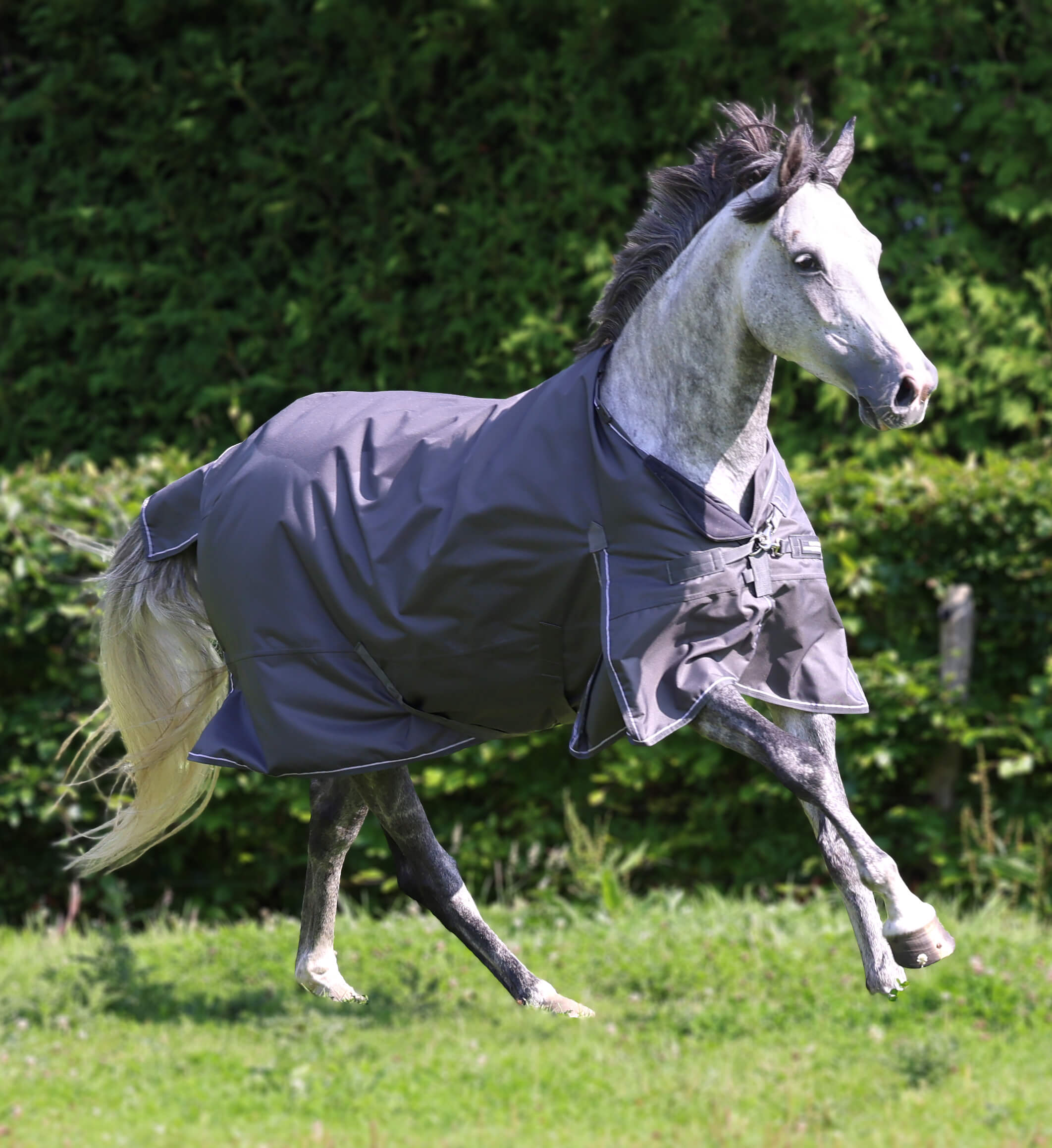 Dækkenets yderstof i robust 1200D ripstop polyester sikrer både vandtæthed (5000 mm) og åndbarhed (4000 mvt), så hesten forbliver tør og komfortabel i alle vejrforhold. Med 100 g fiberfyld får hesten ekstra varme, samtidig med at fugt transporteres effektivt væk fra kroppen. Indersiden med glat materiale gør det nemt at trække dækkenet på plads efter, at hesten har rullet sig i marken.