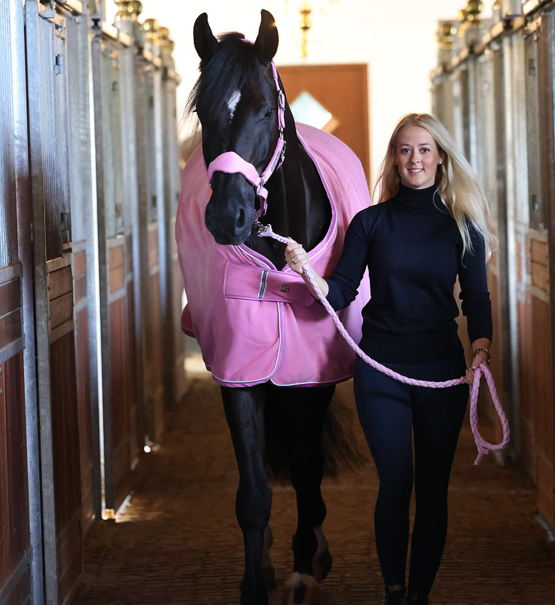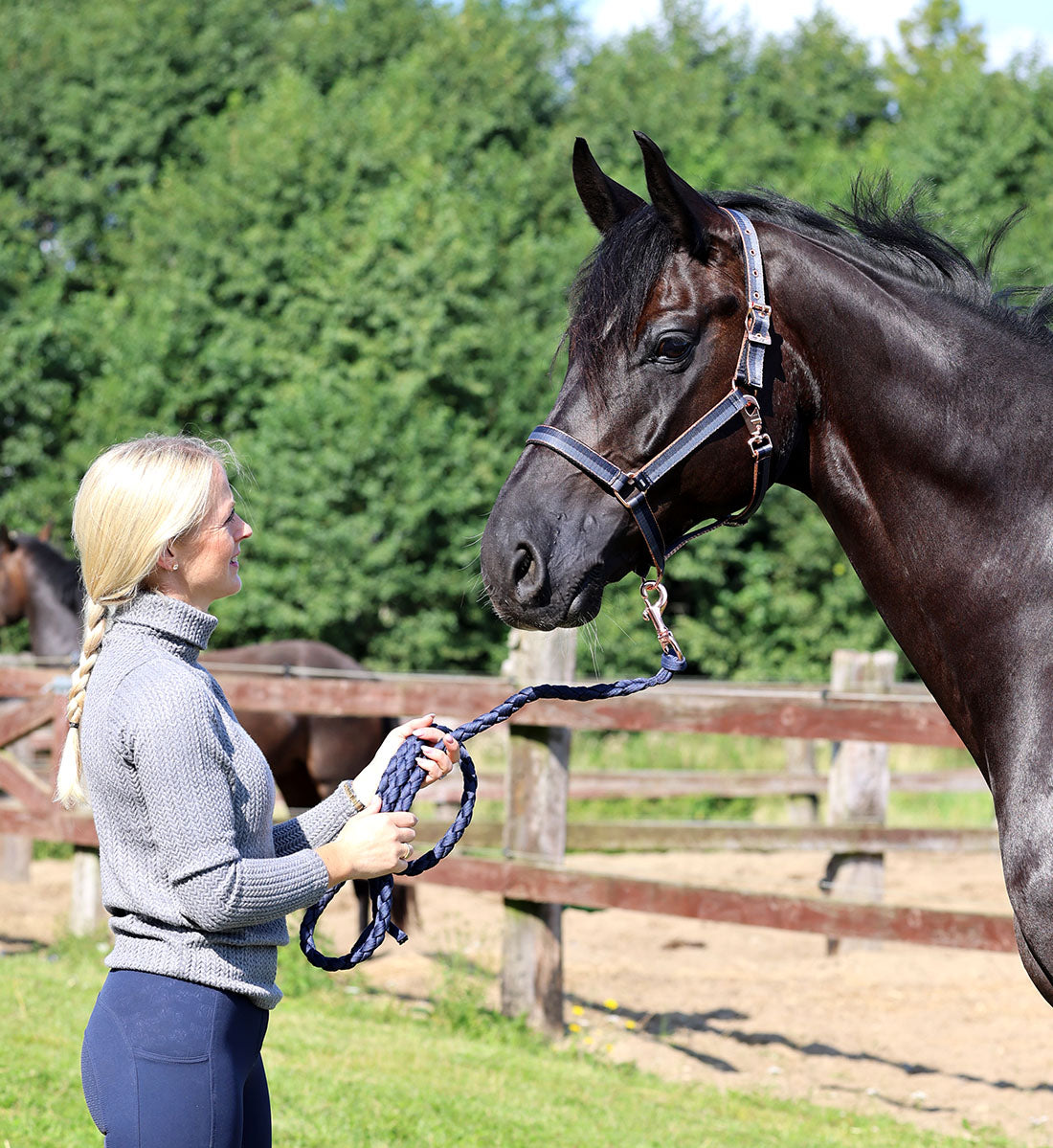 Vores træktov er fremstillet af blød men også slidstærk polyester, der modstår strækning og slid, hvilket sikrer, at det forbliver stærkt og funktionelt over tid. Den flettede konstruktion giver en fleksibel og behagelig håndtering, mens den ekstra styrke i materialet gør, at det kan tåle selv de mest krævende forhold, både når du går med hesten og under transport.