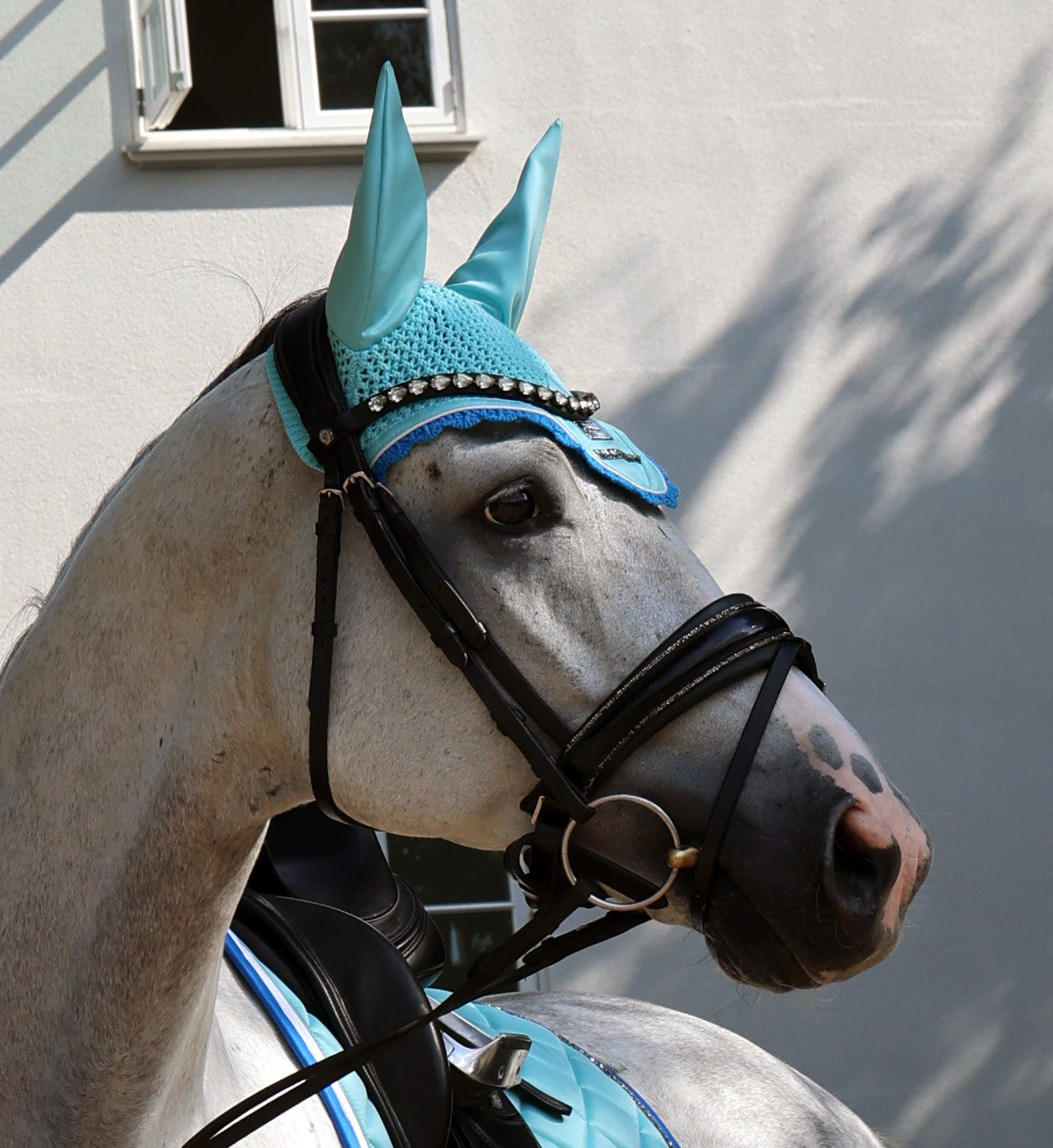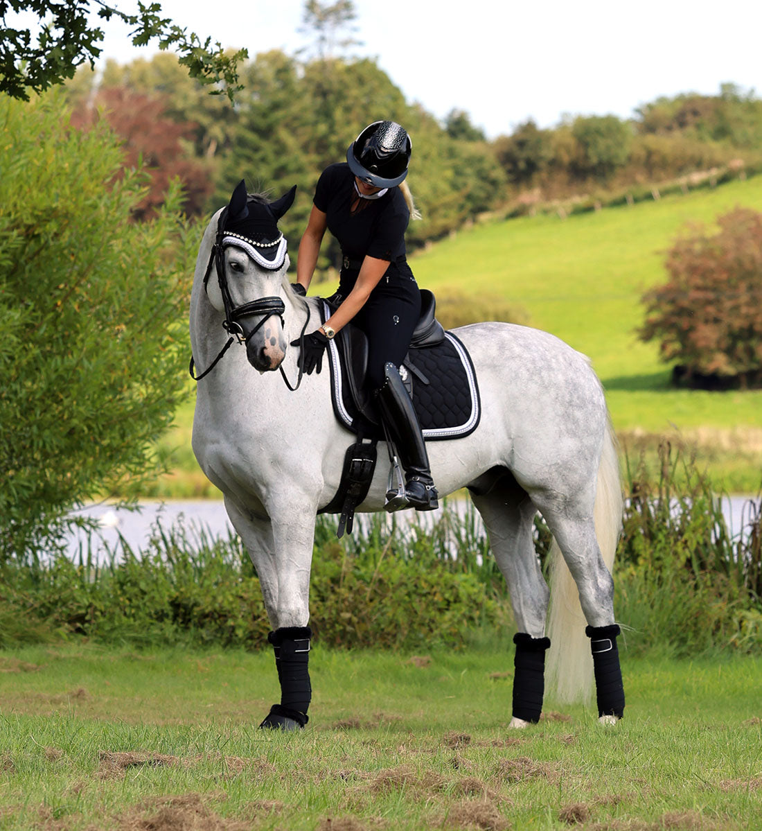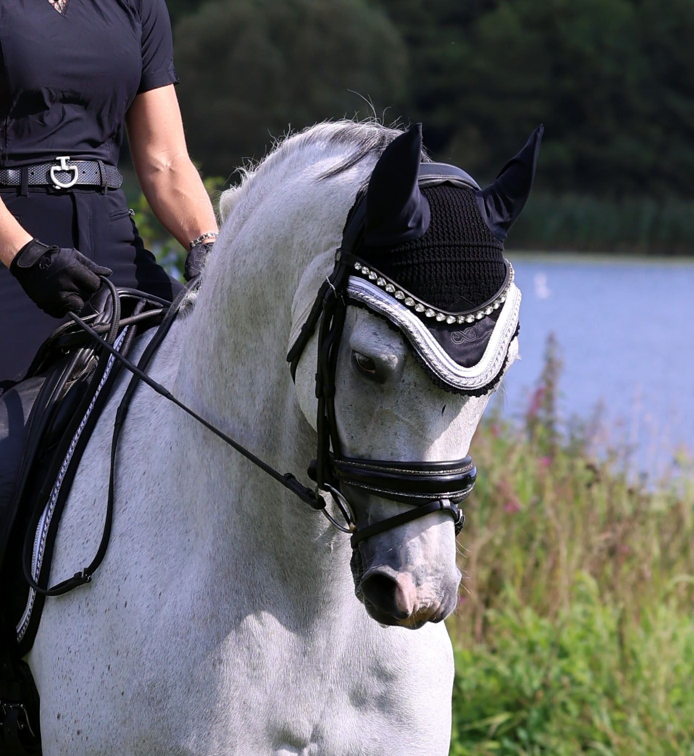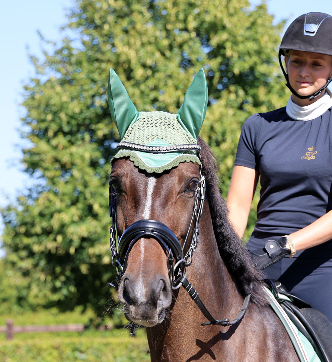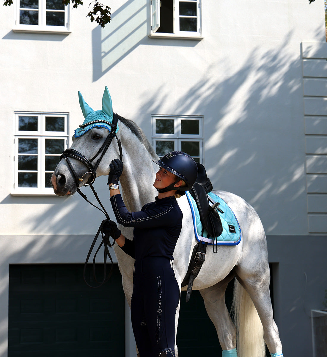 Uanset om du rider dressur eller spring er fluehætterne ikke bare praktiske, men også stilfulde, hvilket giver din hest et fuldendt look med for eksempel matchende underlag og bandager.