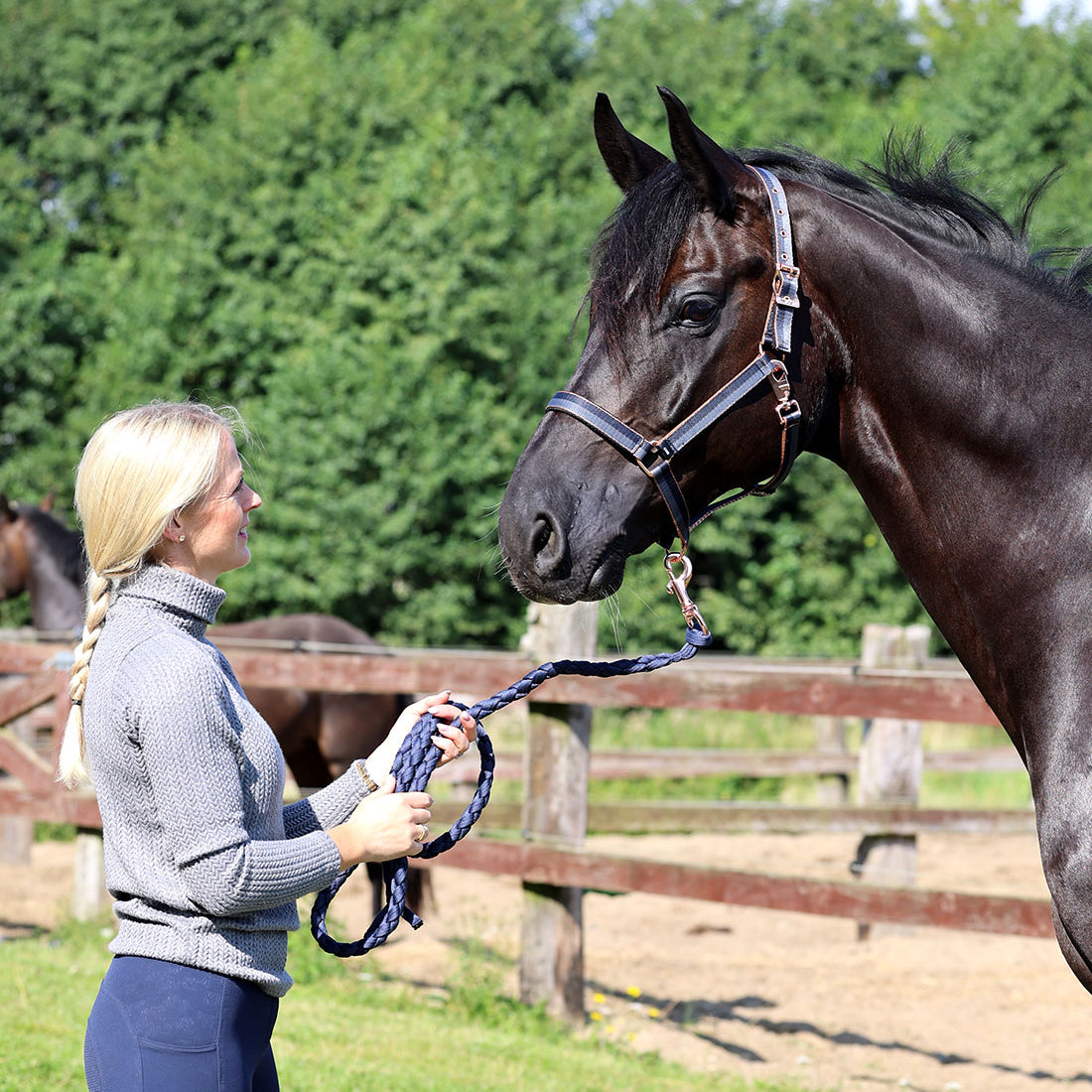 Vores træktov er fremstillet af blød men også slidstærk polyester, der modstår strækning og slid, hvilket sikrer, at det forbliver stærkt og funktionelt over tid. Den flettede konstruktion giver en fleksibel og behagelig håndtering, mens den ekstra styrke i materialet gør, at det kan tåle selv de mest krævende forhold, både når du går med hesten og under transport.