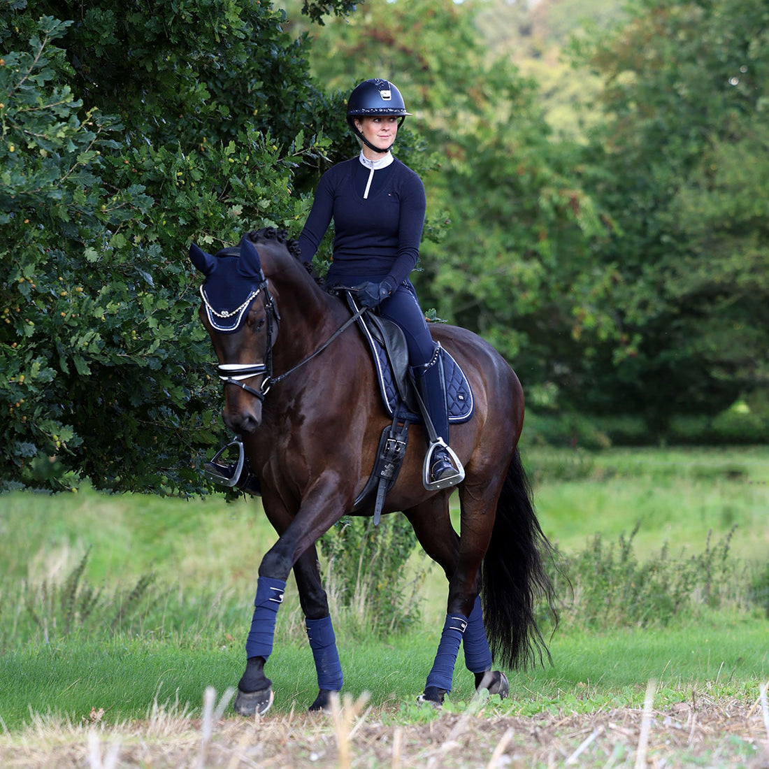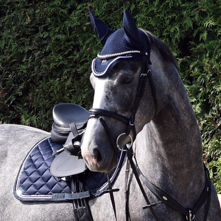 Uanset om du rider dressur eller spring er fluehætterne ikke bare praktiske, men også stilfulde, hvilket giver din hest et fuldendt look med for eksempel matchende underlag og bandager.