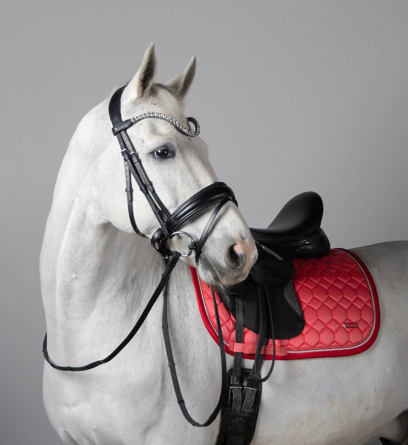 Du finder blandt andet vores populære Platinum sadelunderlag, de helt enkle Prestige Pro underlag og de eksklusive Prestige underlag med flot krystal besat logo.