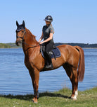 En fornyet klassiker, navy sadelunderlag i nyudviklede funktionsmaterialer, afsluttet med sofistikerede pipings og en diskret sølvmetallic kerne. Designet til at følge hestens bevægelser og give maksimal komfort – uanset tempo.
