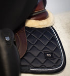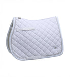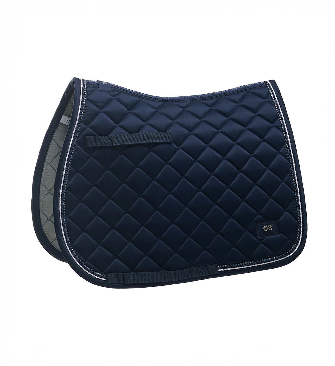 Prestige Crystal sadelunderlag. Kantbånd i blød og smudsafvisende navy satin. 2" Diamond quiltning. Den nye Crystal serie underlag er ekstra blød og skånsom for hestens med sensitive inderside.