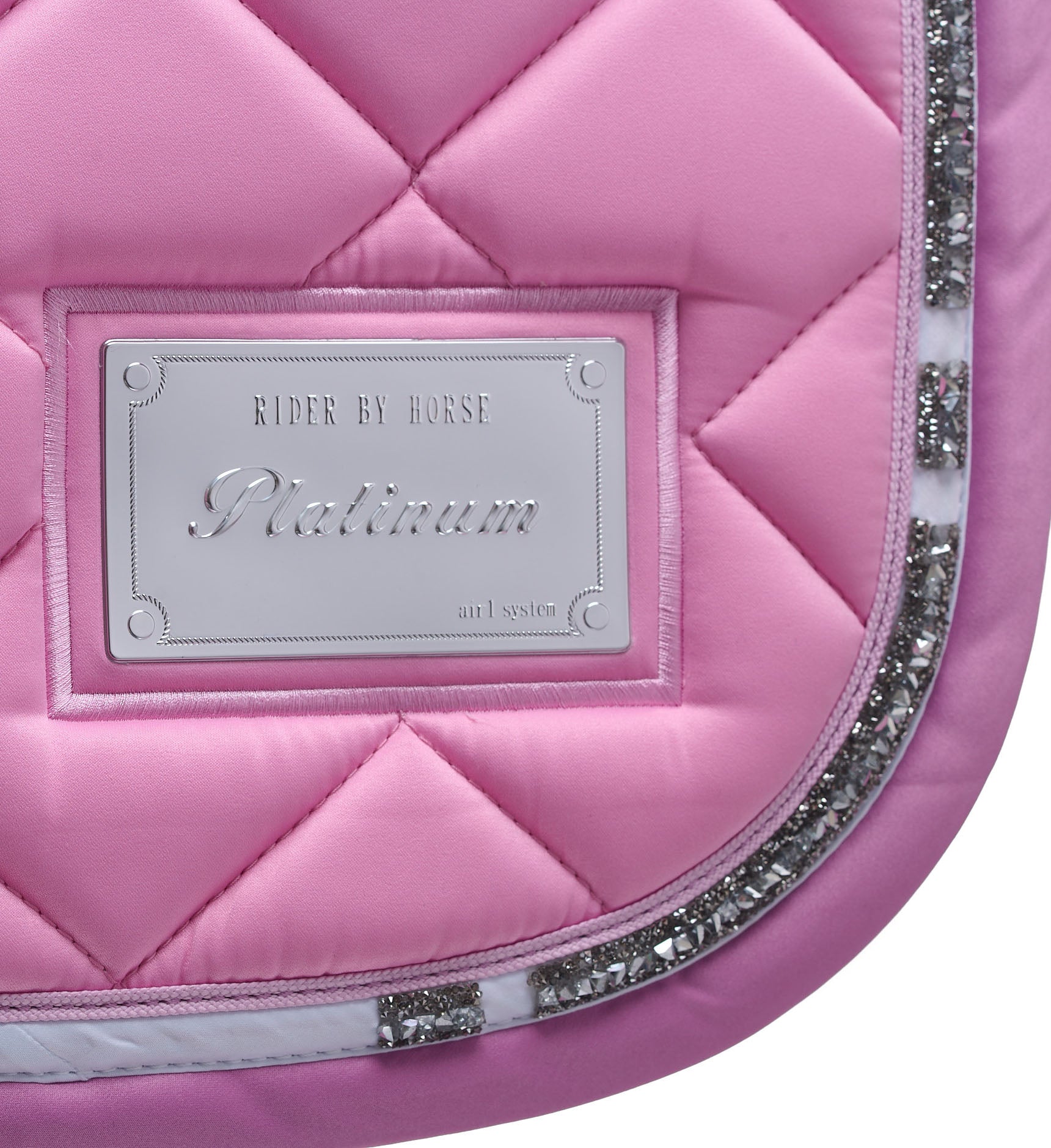Eksklusivt nyt sadelunderlag i cool pink nuance - Begonia Pink med satin kantbånd i i den lidt mørkere farvetone Opera Mauve. Detaljerne er iøjnefaldende med Platinum badge på venstre side, og begge sider af underlaget er med helt nye krystalsten, der er omhyggeligt indsat langs det hvide satin bånd og tilføjer en elegant gnist til det samlede design.
