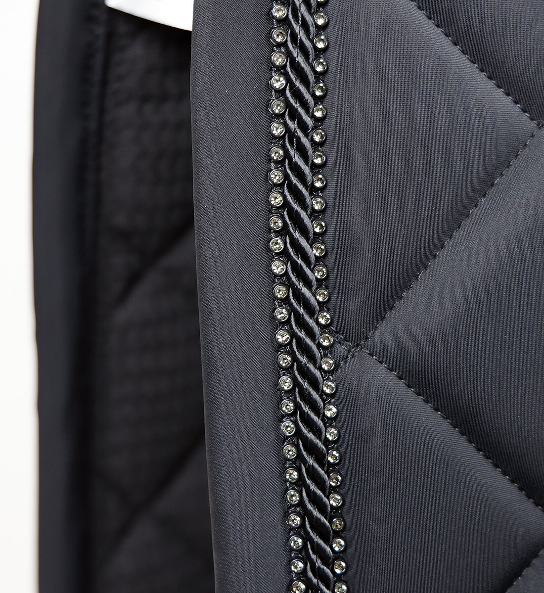 Optimerer svedafledning og forbedrer fordampning, hvilket holder hesten køligere og mere tør under sadlen. High IQ Cool Comfort efterlader stoffet blødt og reducerer statisk elektricitet. Fremmer hurtig tørring og nem fjernelse af pletter, hvilket forkorter vaske- og tørretider og reducerer energi-, vand- og vaskemiddelforbrug. Bevarer samme effektivitet efter gentagne vaske som første gang. High IQ Cool Comfort er godkendt af Blue Sign® og certificeret af Ø ZDHC, hvilket sikrer bæredygtighed og nuludledning af skadelige kemikalier. Platinum Crystal sadelunderlagene til dressur og spring er udstyret med denne teknologi, der forbedrer svedafledning fra hesten.