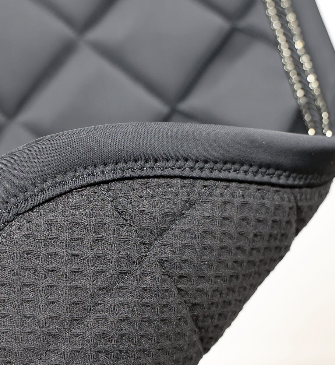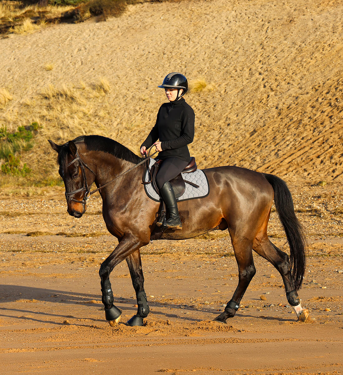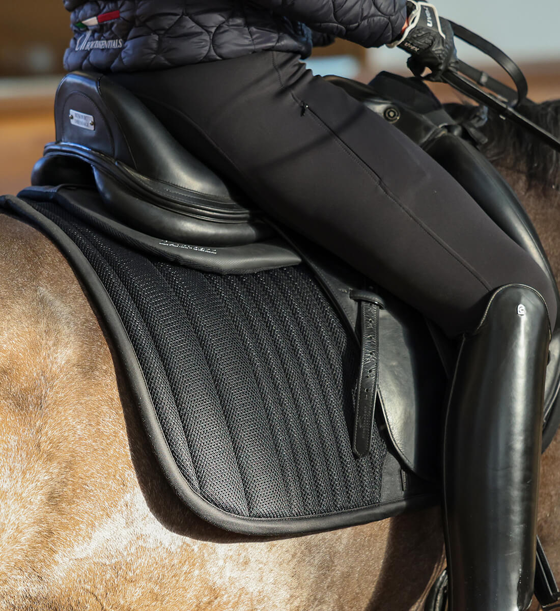 Derfor er Rider by Horse Air1 sadelunderlag designet med avancerede materialer og teknologier for at forbedre ydeevnen og komforten for hesten. Både vores dressurunderlag og springunderlag er lavet af materialer af høj kvalitet og skræddersyet til at passe til sadlen og hestens ryg.