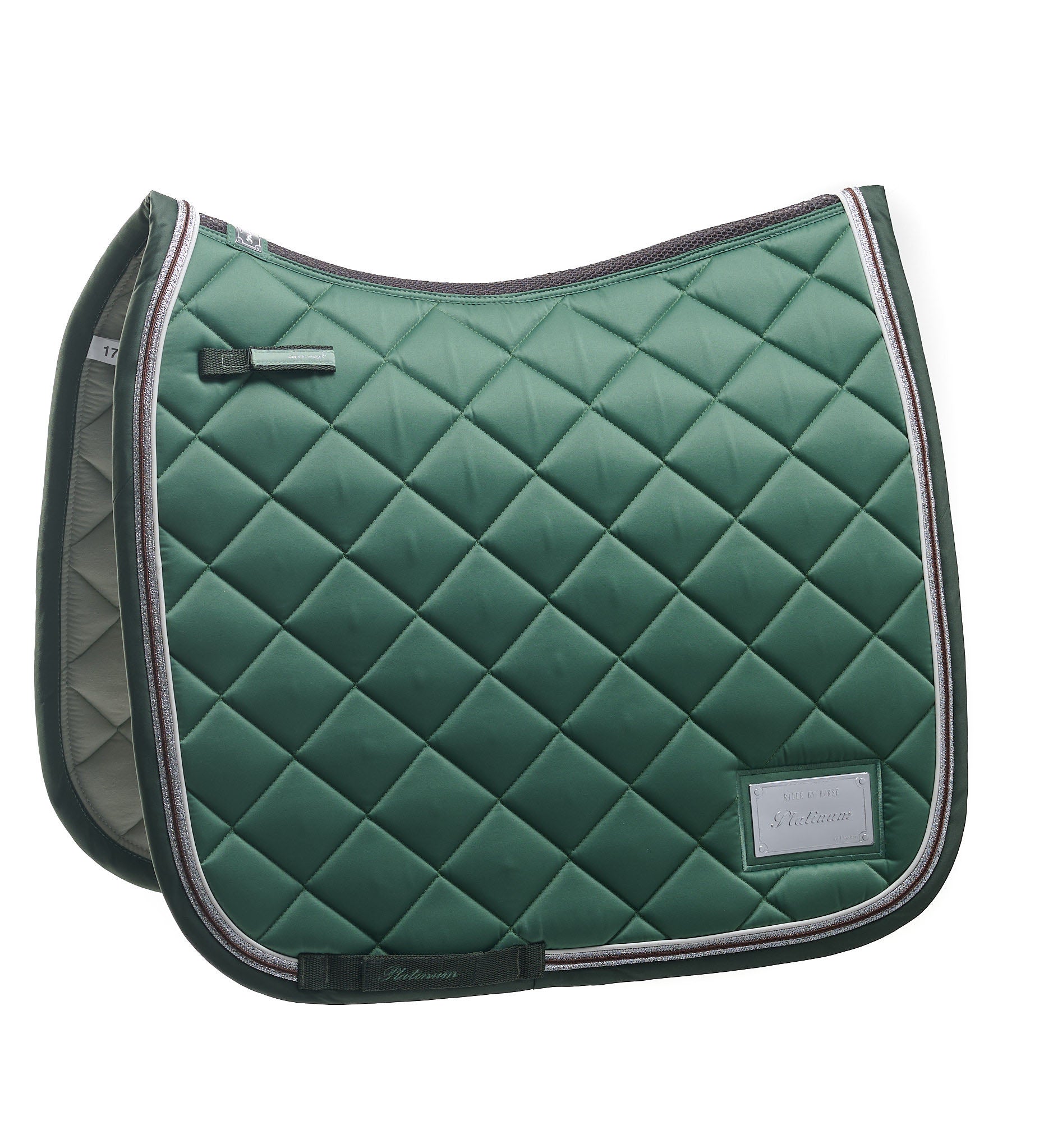 Sadelunderlag til ridestævner i det holdbare og flotte helt hvide Platinum stof med avanceret Nanoteknologi. Takket være Teflon™ - behandlingen af sadelunderlagets ydersider, forbliver det beskyttet mod snavs, pletter og støv. Dette sikrer, at sadelunderlaget bevarer sit friske udseende og føles som nyt i længere tid. Teflon™-teknologien virker uden at påvirke vægt, udseende, følelse, farve eller åndbarhed af sadelunderlaget. Dette betyder, at underlaget forbliver behageligt og funktionelt, samtidig med at det får den nødvendige beskyttelse mod snavs.