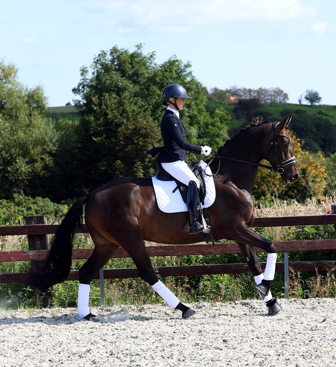 Derfor er Rider by Horse Air1 sadelunderlag designet med avancerede materialer og teknologier for at forbedre ydeevnen og komforten for hesten. Både vores dressurunderlag og springunderlag er lavet af materialer af høj kvalitet og skræddersyet til at passe til sadlen og hestens ryg.