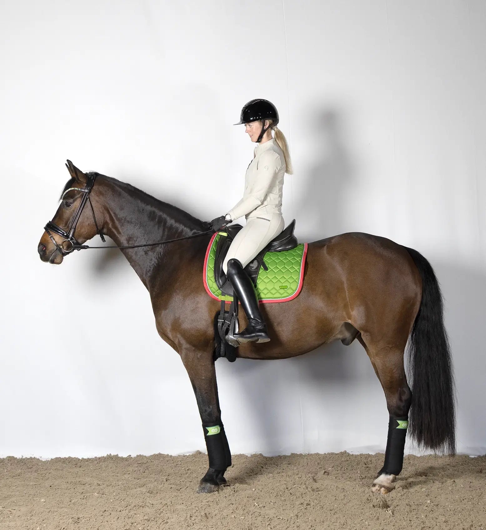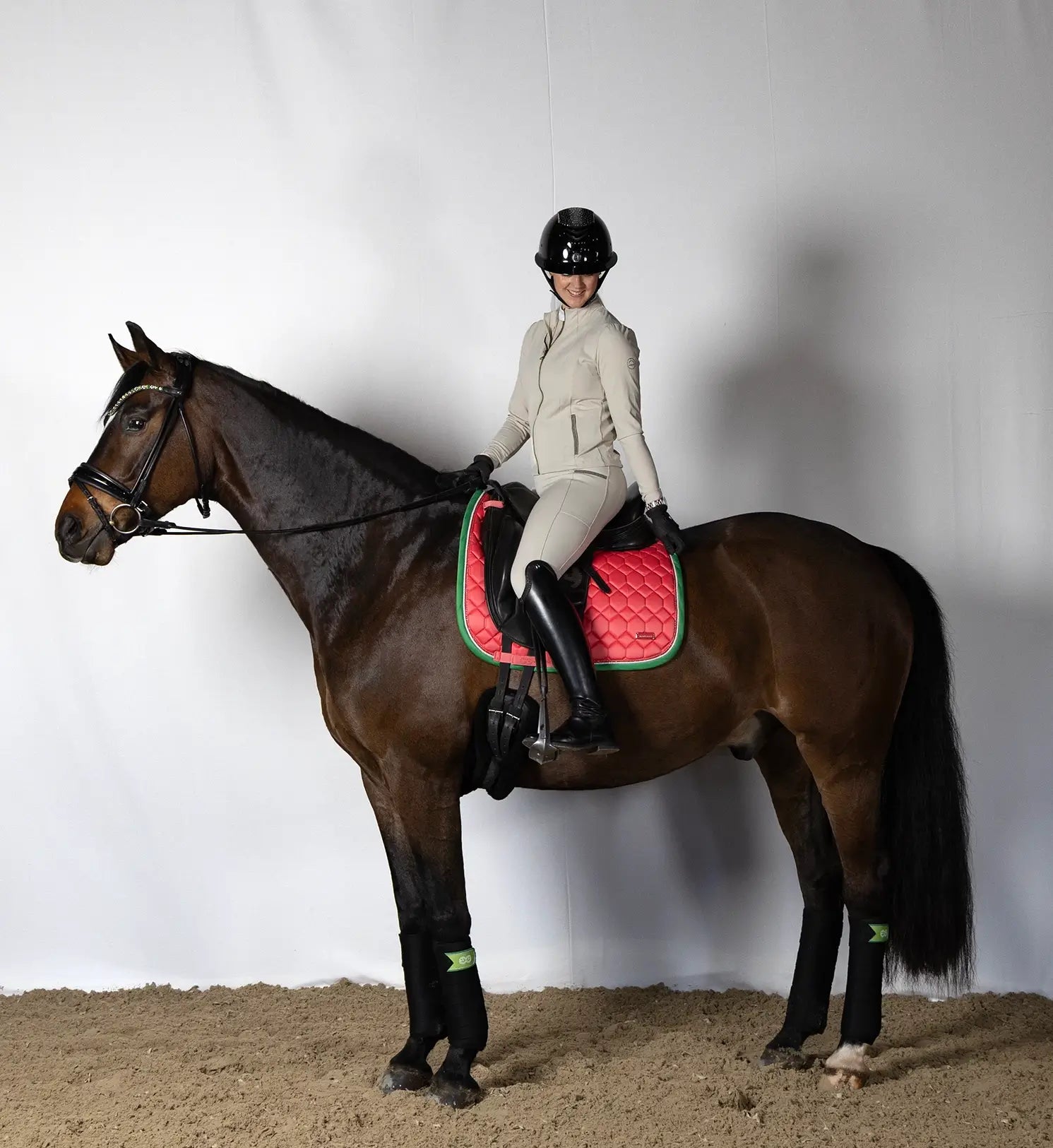 Som et hestevenligt brand fokuserer Rider by Horse ikke kun på at skabe kvalitetsprodukter til hesten, vi stræber også efter at beskytte miljøet, som vi ryttere deler med verden og de kommende generationer. Vores seneste teknologi indebærer brug af genanvendt og naturligt bambusaktivt kul tekstil. Genanvendelse kan forhindre forbruget af friske råmaterialer, hvilket medfører reduktion af energiforbrug, luftforurening (fra forbrænding) og vandforurening (fra deponeret affald).