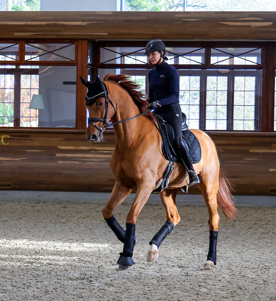 Den Sensitive inderside er kendt for sin evne til at forhindre trykmærker og sikre din hests komfort under længere tids brug. I modsætning til traditionelt bomuld holder denne blanding ikke på fugt, men leder effektivt sved og fugt væk for at holde din hest tør og komfortabel.