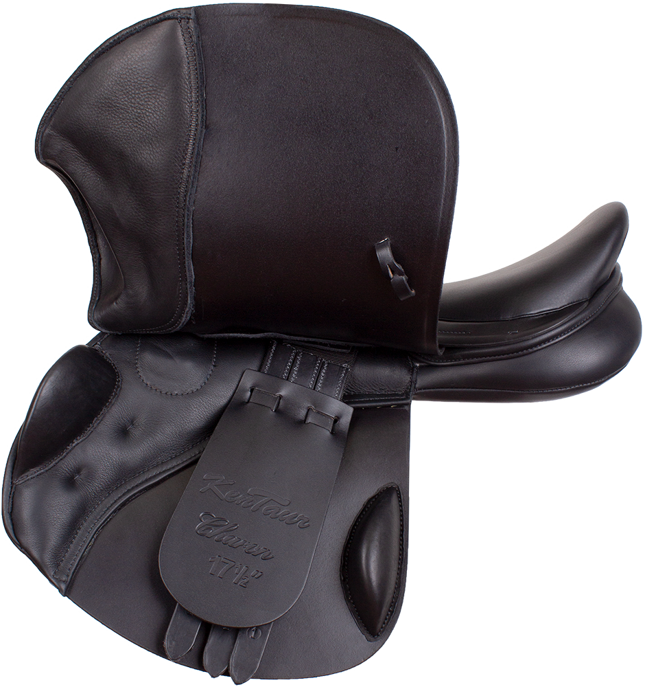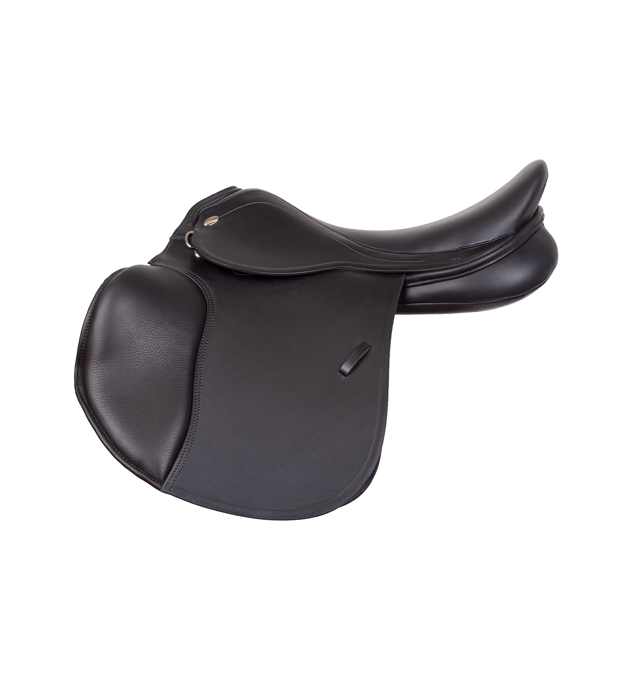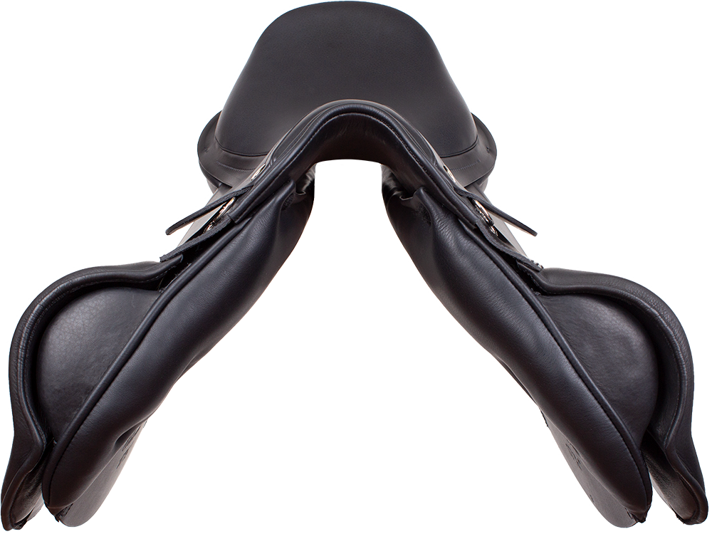 Springsadel med flexibel bom og medium dybt sæde. Sadlen har velcro på knæ- og lægstøtterne. Velcroen giver rytteren optimal mulighed for individuel tilpasning.