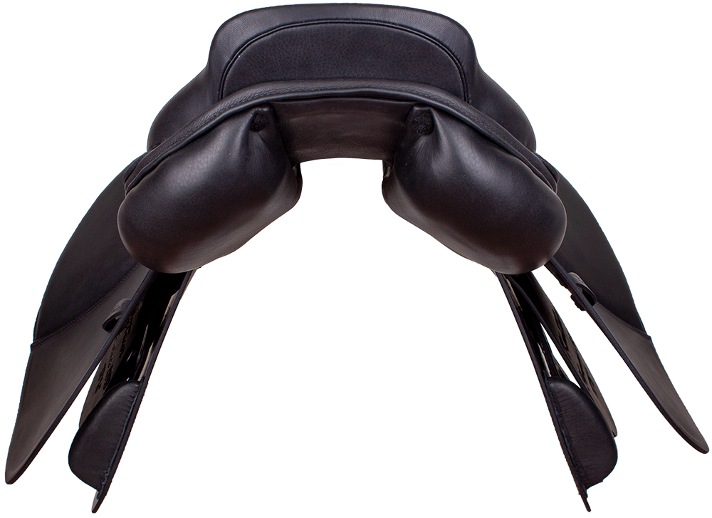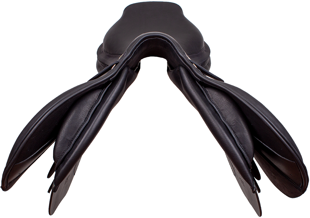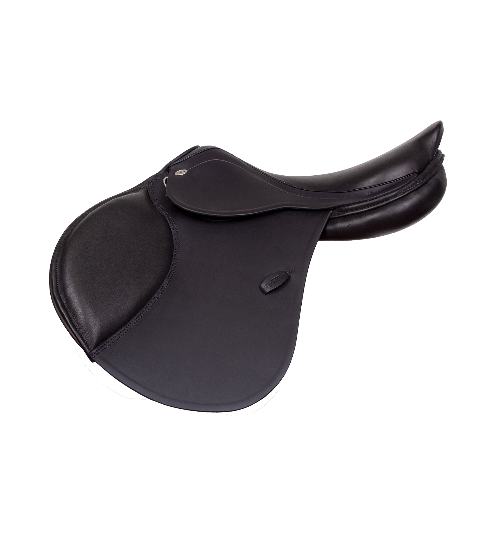 En springsadel bygget på flad bom. Bløde paneller fremstillet af blødt skummateriale med en fast kerne. Med flat sæde gives springrytteren optimal bevægelsesfrihed - de bløde knæstøtter er lavet af super blød memory foam og giver rytteren en tæt og blød kontakt med hesten.