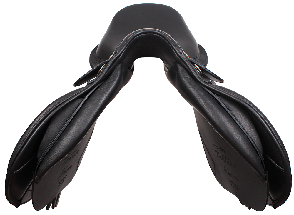 Springsadel med flexibel bom og medium dybt sæde. Sadlen har flade latexpaneler som giver rytteren optimal kontakt med hesten. Sadlen har anatomisk formede sadelklapper og sæde- og knæpuder er beklædt med non-slip kalveskind.
