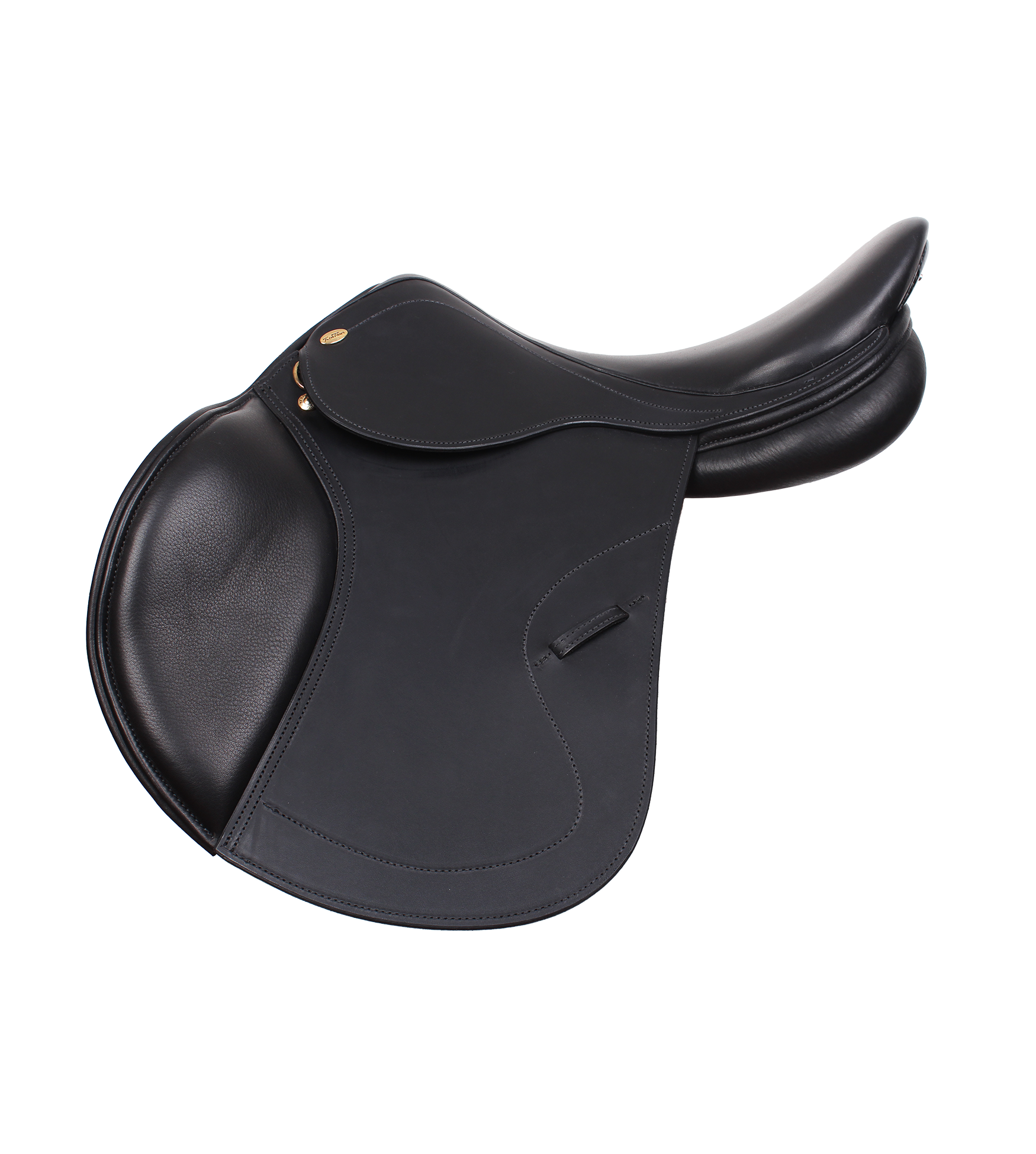 Springsadel med flexibel bom og medium dybt sæde. Sadlens sandwich latexpaneler er super trykfordelende og meget bekvemme for hesten De formskårede sadelklapper og sæde og knæpuder er beklædt med non-slip kalveskind.