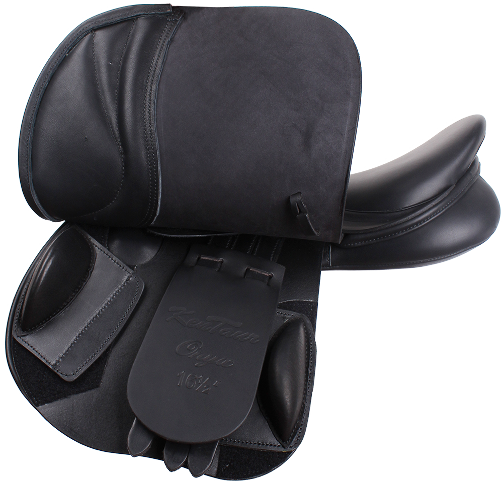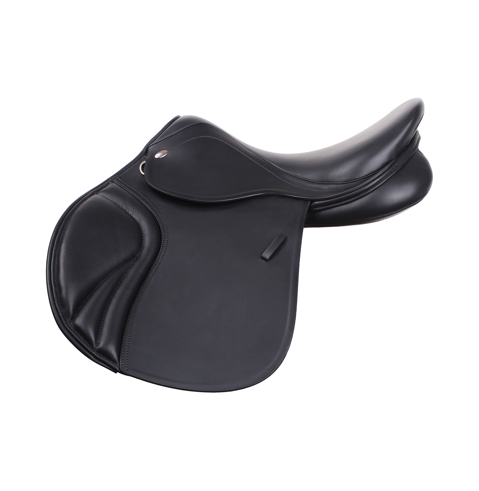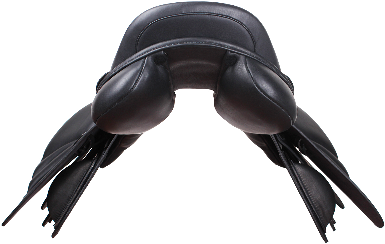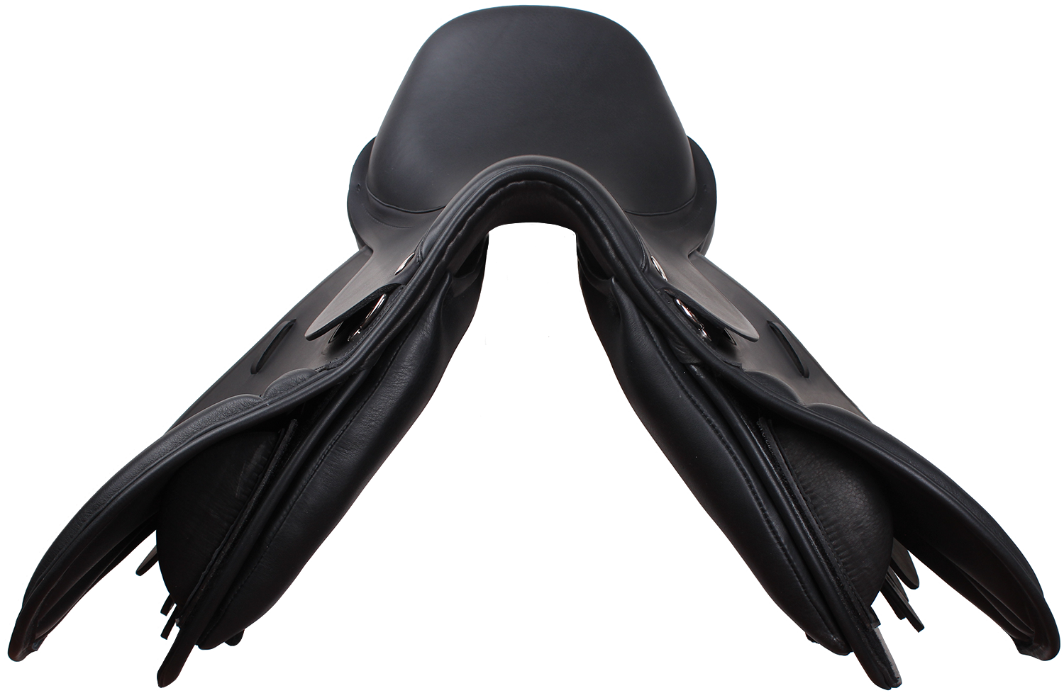 Springsadel med flexibel bom og medium dybt sæde. Sadlen har velcro på knæ- og lægstøtterne. Velcroen giver rytteren optimal mulighed for individuel tilpasning.
